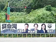 Lai and Hsiao held their first rally together on 26 November 2023, where they called the election a "fight for the survival of the country".[58] Lai's campaign used his late pet dog and Hsiao's pet cats as campaign mascots, the cats allegedly referencing Hsiao's "cat warrior" diplomacy.[59] Thousands of Taiwanese academics voiced their support for Lai, arguing the DPP would continue to safeguard the country's democracy.[60] Hou of the KMT said Lai was "paying lip service" to voters, and described the election as a choice between war or peace. The TPP generally opted for smaller rallies, which primarily attracted younger voters.[58] As usual, temples were visited by party candidates so as to interact with voters.[61]