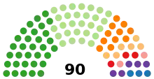 Makeup of the National Council of Provinces in the 22nd Parliament; a darker shade represents a permanent delegate while a lighter shade represents a special delegate