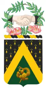 The regiment was constituted on 3 September 1980 as the 240th Cavalry, a Combat Arms Regimental System (CARS) parent regiment in the Kentucky Army National Guard. It was partially organized on 1 November 1980 to consist of Troop A at Owensboro, part of the 149th Armored Brigade. The troop was the armored cavalry reconnaissance troop of the brigade, which was brought to full strength due to the Kentucky Army National Guard reaching its authorized strength in 1980.[2][3] The troop was originally constituted on 13 May 1946 as the Headquarters, Headquarters and Service Company of the 201st Engineer Combat Battalion in the Kentucky National Guard, and organized and Federally recognized on 24 August 1949 at Owensboro. It was ordered into active Federal service on 1 May 1951 during the Korean War but did not go overseas. The battalion became the 201st Engineer Battalion on 8 June 1953 and the company was released from active duty and reverted to state control on 30 March 1955. On 1 October 1959, it was redesignated as the Headquarters and Headquarters Company of the 123rd Armor's 2nd Medium Tank Battalion. Company A, 240th Tank Battalion was among the Owensboro units consolidated to form the HHC of the battalion.[4] The company was ordered into active Federal service on 15 October 1961 during the Berlin Crisis to replace units that had been deployed to Germany at Fort Stewart. After tensions lowered, the company was released from active service[5] and reverted to state control on 11 August 1962. On 6 April 1964, the battalion became the 2nd Battalion, 123rd Armor.[6]