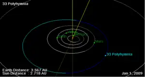 Orbit of 33 Polyhymnia (1 Jan 2009)