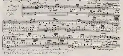 Fugue No. 13, an example of Reicha's "new harmonic system", which can provide cadences on almost all of the scale degrees, as pointed out in the score by Reicha himself.