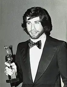 John Travolta with a special Golden Globe as 'World Film Favorites', which he received along with Jane Fonda.