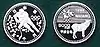 5000 yen commemorative coins were minted again in sterling silver to celebrate the 1998 Winter Olympics, which were held in the Japanese city of Nagano. The actual production of the coins however, took place in 1997 (9th year of Heisei) and lasted into 1998 (Heisei 10).[8][9][10] They were then released in sets of three different series alongside 500 and 10,000 yen Nagano commemoratives. A limit of 5,000,000 coins each (133,000 for proofs) was set for the 5000 yen denomination. Three different Olympic themes were used on the obverse sides of the coins as a design feature: Hockey (series 1), Biathlon (series 2), and Paralympic Skier (series 3).[8][9][10] For the reverse a Serow is featured along with the value and date.