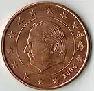 Belgium Belgian euro coins FIRST SERIES: An effigy of King Albert II. To the right-hand side among the stars was the king's monogram, a letter "A", underneath a crown. The year is lower down, also among the stars.[4] 1999–2007