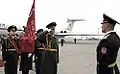 The Victory Banner was brought to Kyiv from Moscow via train to take part in the parade. From the airport, the Victory Banner was transported to the Museum of the Great Patriotic War. On the evening of October 28, the banner was handed over to representatives of the Russian delegation, who returned it to the Central Armed Forces Museum in Moscow.