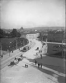It was originally named Triangelplassen ('The Triangle Square'), but was renamed in 1962 after 7 June 1905, the day when the Union between Sweden and Norway was declared dissolved by the Norwegian government. In the southern end of the square is found the entrance to the Norwegian Ministry of Foreign Affairs. At the square is the famous statue of King Haakon VII of Norway—who returned to the country on 7 June 1945 from his exile imposed due to the 1940–1945 German occupation of Norway—sculpted by Nils Aas.[1]