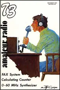 73 Magazine (also known as 73 Amateur Radio Today) (OCLC 22239204) was a United States-based amateur radio magazine that was published from 1960 to 2003. It was known for its strong emphasis on technical articles and for the lengthy editorials in each issue by its founder and publisher, Wayne Green. The magazine title, 73, (Morse: −−••• •••−− ) means "best regards" in amateur radio lingo.