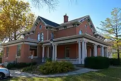 The A. W. Pratt House, also known as the Pratt-Soper House, is a historic building located in Iowa City, Iowa, United States. The A. W. and Fanny Pratt family was among the first settlers in Johnson County.[2] Albert W. Pratt, who had this house built in 1885, was one of their seven children. At the time it was built, this area was outside of the city limits. The two-story brick structure features around arch windows with keystones, double brackets under the eaves, and a broad cornice. The wrap-around porch is believed to have been built around the turn of the 20th century, replacing the original.[2] Walter I. Pratt built an addition onto the house for his Kimball pipe organ. That space was converted into bedrooms and a bath around 1966. The house was individually listed on the National Register of Historic Places in 1983.[1] In 2004 it was included as a contributing property in the Melrose Historic District.[3]