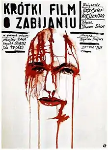 A Short Film About Killing (Polish: Krótki film o zabijaniu) is a 1988 drama film directed by Krzysztof Kieślowski and starring Mirosław Baka, Krzysztof Globisz, and Jan Tesarz. Written by Krzysztof Kieślowski and Krzysztof Piesiewicz, the film was expanded from Dekalog: Five of the Polish television series Dekalog. Set in Warsaw, Poland, the film compares the senseless, violent murder of an individual to the cold, calculated execution by the state.[1] A Short Film About Killing won both the Jury Prize and the FIPRESCI Prize at the 1988 Cannes Film Festival,[2] as well as the European Film Award for Best Film.[3]