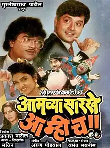 Aamchyasarkhe Aamhich (translation: We Are Incomparable) is a 1990 Indian Marathi-language comedy drama film written and directed by Sachin Pilgaonkar and produced by Prakash Patil. The film was released in Maharashtra on 1 November 1990 and stars an ensemble cast of Ashok Saraf, Sachin Pilgaonkar (both portraying double roles), Nivedita Joshi Saraf, Varsha Usgaonkar, Rekha Rao, Sudhir Joshi, Jairam Kulkarni, Viju Khote and Mangala Sanzgiri.[1][2][3][4]