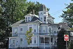 The Aaron Martin House is a historic house in Waltham, Massachusetts. The 2+12-story wood-frame house was built in the 1890s by Waltham Watch Company employee and real estate speculator Aaron Martin. It is a particularly well-preserved local example of Queen Anne styling. It has a variety of projections, gables, and porches, in a manner typical of the style, as well as a 3+12-story tower with a bell-shaped roof. Its porches are elaborately decorated with gingerbread woodwork.[2]