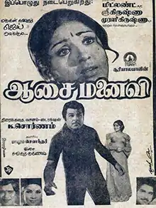 Aasai Manaivi (transl.The desirable wife) is a 1977 Indian Tamil-language film directed by K. Sornam, and produced by Mayuram Soundar. The film stars Jaishankar and Sujatha. It was released on 27 August 1977.[2]