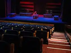 The main house seats 250 people, with space for four wheelchair users with a carer seat by the side of each. The stage is a little over 3 feet high from floor level. Seating is raked (stepped) to the back of the auditorium.