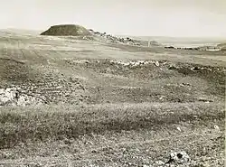 In May 2012, a four-day survey was conducted, combining an extensive walking survey with limited shallow (up to 10 cm) excavation in six areas spread around the site.[10] The survey showed that there was occupation in the Early Bronze [EB] II-III, Middle Bronze [MB] II, Late Bronze [LB]I-II, Iron Age I-II, Persian, Hellenistic, Byzantine, Early Islamic, Crusader, Mamluk and Ottoman periods. The survey also revealed that the lower part of the tell in the south has an outcropping of bedrock running through much of its center, indicating that the ancient remains in this part of the site should be sought around its perimeter.