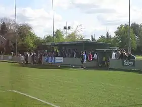 In 1982–83 season Abingdon entered the FA Vase for the first time; four seasons later they played in the FA Cup for the first time, losing to Stourbridge after two replays in the first qualifying round.[8] The 1996–97 season saw the club win three trophies; the Hellenic League's Floodlit Cup, the Hellenic – Hungerford Cup and the Berks & Bucks Senior Trophy.[7] They retained the Berks & Bucks Senior Trophy the following season, and won the Hellenic – Hungerford Cup again in 2001–02.[7] In 2005–06 the club finished third in the Premier Division, and were promoted to Division One South & West of the Southern League.[8] The club remained in the Southern League Division One South & West until the end of the 2012–13 season, when they resigned from the league and rejoined the Hellenic League Premier Division.[8]
