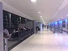 Terminal 3 is the newest addition and a direct expansion to the western side of Terminal 1. It is a brick-shaped, bi-level facility featuring a duty-free and food court area as well as departure gates 32–35 and 58–61, and bus gates 28–31 and 36–57.[19] The majority of passengers are bused to their airplanes as only 8 of its 33 gates are equipped with jetbridges.[32] Terminal 3 is capable of handling the Airbus A380s, and is used almost entirely by just Etihad Airways.