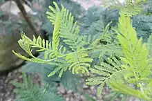 Acacia dealbata, the silver wattle, blue wattle[3] or mimosa,[4] is a species of flowering plant in the legume family Fabaceae, native to southeastern Australia in New South Wales, Victoria, Tasmania, and the Australian Capital Territory, and widely introduced in Mediterranean, warm temperate, and highland tropical landscapes.[5]