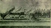 For five months, the Governor of Acadia d'Aulnay, who was stationed at Port Royal, created a blockade of the river to defeat La Tour at his fort.[8] On 14 July 1643, La Tour arrived from Boston with four ships and a complement of 270 men to repossess Fort Sainte-Marie. After this victory, La Tour went on to attack d'Aulnay at Port Royal, Nova Scotia.[10] LaTour was unsuccessful then in catching d'Aulnay and the rivalry continued for several more years.