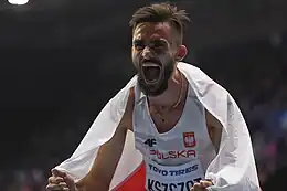 Adam Piotr Kszczot (pronounced [ˈadam ˈkʂt͡ʂɔt]; born 2 September 1989) is a retired Polish middle-distance runner who specialised in the 800 metres. His achievements include silver medals at the 2015 and 2017 World Championships in Athletics, gold at the 2018 World Indoor Championships as well as silver and bronze at the 2014 and 2010 World Indoor Championships respectively. Kszczot won three gold medals in the 800 m at both the European Outdoor and Indoor Championships. He twice competed at the Olympic Games, in 2012 and 2016, narrowly missing the final on both occasions.