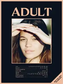 Adult is a magazine of "new erotics"[1] launched in November 2013[2] by editor-in-chief Sarah Nicole Prickett, creative director Berkeley Poole, publisher Noah Wunsch, and photo editor Jai Lennard.[3] Lauren Festa later joined as assistant editor, as well as Cheyenne Skeete as editorial intern.[4]