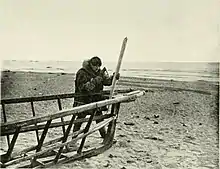 The ahnetjer (Manuel de Codage transliteration: aH-nTr) depicted as an adze-like instrument,[3] was used in the Opening of the Mouth ceremony, intended to convey power over their senses to statues and mummies. It was apparently the foreleg of a freshly sacrificed bull or cow with which the mouth was touched.[4][5]