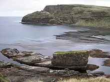 Agattu (Aleut: Angatux̂;[1] Russian: Агатту) is an island in Alaska, part of the Near Islands in the western end of the Aleutian Islands. With a land area of 85.558 square miles (221.59 km2) Agattu is one of the largest uninhabited islands in the Aleutians. It is the second largest of the Near Islands, after Attu Island. It is volcanic and considerably mountainous. The treeless island has a tundra-like terrain which reaches a peak of 2,073 feet (632 m) above sea level. Its length is 19 miles (30 km) and width is 12.2 miles (19.7 km).