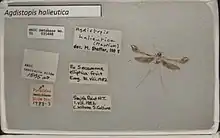 | Agdistopis halieutica (Meyrick, 1932), specimen (lacking abdomen) from Australian National Insect Collection (ANIC), reared from fruit of Secamone elliptica. | |