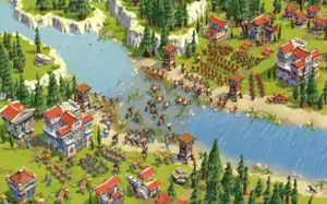 Age of Empires Online is a multiplayer online real-time strategy game developed by Robot Entertainment and Gas Powered Games that was released on August 16, 2011.[1] Based upon the gameplay of the Age of Empires series, it was originally developed by Robot Entertainment, but on February 24, 2011, Gas Powered Games, took over production. The game was published by Microsoft.[2]