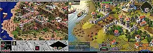 In designing the new look for the game, Robot had six artists come together to create a new art style which would look similar to the previous games from the series, yet look more "visually appealing", "timeless", and "bright". Among the art team was Ensemble Studios' first artist Brad Crow, who had worked on every Age of Empires game produced by the studio. The team implemented several ideas to give the game an improved core visual interface over that of its predecessors such as; increasing the field of view so that the player was able to see more on the screen, a tighter user interface to allow more of the field of play to be visible, a new building design to make them encompass less screen space — while also making them look more recognizable, and giving each unit a unique look and animation making them more easily distinguishable from each other.[16]