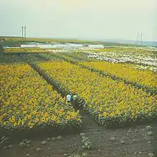 As of 1995, agricultural production delivered an estimated 40% of total production in Moldova, employing an estimated 1/3 of the total labour force.[22] Between 1987 and 1990, Moldova's trade basket featured agricultural and food products as more than 50% of total exports.[22] The composition of the sector in 1989-1990 involved the crop sector accounting for 60% of agricultural output's value, and the livestock sector contributing to 40%.[22] Agricultural land for this period was 2.3 million hectares, of which arable land was 1.5 million hectares.[22] Historically, agricultural output has accounted for a larger percentage of GDP, where between 1995 and 1997 it accounted for 27.39%, in comparison to 9.03% for 2007–2009.[11] In the period 1989–1993, total agricultural output was estimated to have declined by 33% for Moldova.[22] The decline in agriculture transpired within the livestock sector, with a fall in meat production by 40% between 1991 and 1993.[22] Moldova as a former member of the Soviet Union historically had access to a sizeable market, as in 1972, where Moldova's livestock exports accounted for 1% of cattle and 2% of pigs in the USSR.[22]