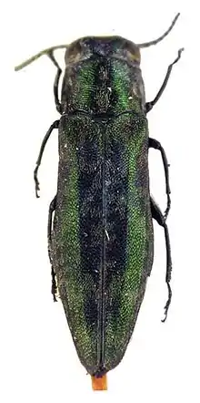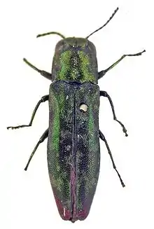 - ↑ Bellamy, C. L. "Genus Agrilus Curtis 1825". The World of Jewel Beetles (Insecta: Coleoptera: Buprestidae). The Coleopterists Society. Archived from the original on 15 February 2016. Retrieved 25 April 2018.