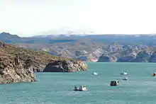 The Agua del Toro Dam is an arch dam on the Diamante River about 63 kilometres (39 mi) west of San Rafael in Mendoza Province, Argentina. The primary purpose of the dam is hydroelectric power generation and it supports a 150 megawatts (200,000 hp) power station located downstream. Construction on the dam began in 1966, and it was completed in 1973. The power station was started the same year and commissioned in 1982. The dam and power station is part of the Rio Diamante System which is owned jointly by Hidroeléctrica Diamante (HIDISA) and Hidroeléctrica de los Nihuiles (HINISA).[1][2][3]