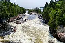 The Aguasabon River /ˌɑːɡwəˈsɑːbən/ is a river in Thunder Bay District, Ontario, Canada. The river originates at Chorus Lake and empties into Lake Superior near the community of Terrace Bay. When the Canadian Pacific Railway was being built 1882-1885, the river was known as the Black River at mileage 857 miles from Montreal, not to be confused with the Black River near Heron Bay.[1]