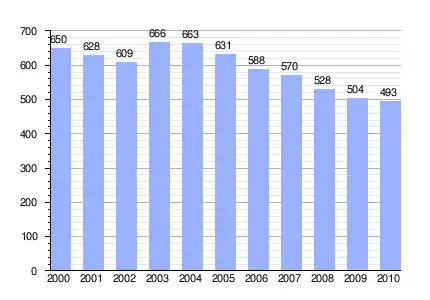 | Vertical bar chart demographic of Aguilar del Río Alhama between 1857 and 2010 |