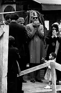 Amtul Hafeez Begum, daughter of Mirza Ghulam Ahmad. She laid the foundation stone for the Mahmud Mosque, the first mosque in the country. On her right is Mushtaq Ahmad Bajwa, a missionary.