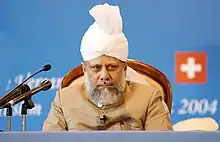 Fifth Caliph of the community Mirza Masroor Ahmad heading the 2004 Jalsa Salana Switzerland during his Europe tour that year