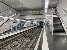Aimé Césaire (French pronunciation: [ɛme sezɛʁ]) is a station on line 12 of the Paris Métro. The station is located at Place Henri-Rol-Tanguy in Aubervilliers.[2] It is named in honour of the French Martinican poet Aimé Césaire. It is the 307th station to open.