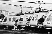 Air America Bell 205s being evacuated aboard USS Hancock, in 1975 - Consolidated PBY-5A Catalina