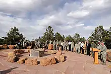 The Falcon Circle is the newest of the Cadet Chapel's worship areas, dedicated in 2011. It was established through a request from followers of Earth-Centered Spirituality, an umbrella of traditions that includes Wicca, Paganism and Druidism. It is open to use by all religious communities to worship in a manner respectful of other faiths.[9]