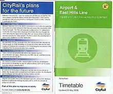 The Airport & South Line (numbered T8, coloured green; commonly called the East Hills Line) is a suburban commuter rail line in Sydney, Australia. It connects the Sydney central business district with the southwestern suburbs via Sydney Airport. The line is part of the Sydney Trains network. The line began operating on 26 November 2017, when the T2 Airport, Inner West & South Line was split in two. Sydney Trains' predecessor CityRail operated the Airport & East Hills Line over an identical route between 2000 and 2013.