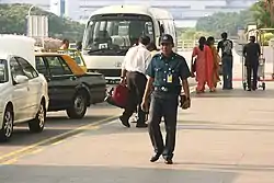 An Aetos auxiliary police officer outside the Departure Hall of Terminal 2, Singapore Changi Airport