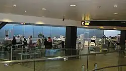 Roving patrol teams of two soldiers and a police officer armed with automatic weapons patrol the terminals at random. Departing passengers are checked at the entrance of the gate rather than after immigration clearance unlike Hong Kong International Airport. This security measure is easily noticed by the presence of X-ray machines and metal detectors at every gate, which is not normally seen at other airports.