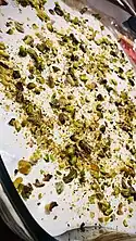 Aish as-Saraya (Arabic: عيش السرايا, literally: "palace bread", in Egypt it is shortened "عيش" "bread") is an Arab dessert eaten regularly in the Levant and Egypt,[1][2] consisting of syrup-soaked breadcrumbs topped with clotted cream and pistachios, and contains neither eggs nor butter.[3] It is popular in the Arab world.[4]