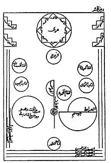 Diagram of "Plain of Assembly" (Ard al-Hashr) on the Day of Judgment, from autograph manuscript of Futuhat al-Makkiyya, ca. 1238 (photo: after Futuhat al-Makkiyya, Cairo edition, 1911)