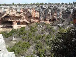Its dimensions are about 100 x 150 m2 ( 330 x 490 ft2) Its maximum depth with respect to surrounding is 70 metres (230 ft).[1] There is a rock carved ancient ladder on the north west side. But a part of the ladder has been demolished and descending by using the ladder is dangerous. There are several man made caves on the walls of the sinkhole. 400 metres (1,300 ft) west of the sinkhole there are traces of an ancient settlement which was probably a cult center. It is thought that the sinkhole and the settlement were probably related to each other.[1] There are rock tombs and altars to the south of the sinkhole [2]