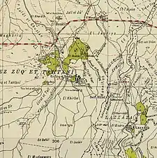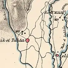 In 1875, Victor Guérin noted it south of Al-Zuq al-Fawqani, but with lesser important ruins.[6] In 1881, the PEF's Survey of Western Palestine described Zuk et Tahta: "Stone and mud village, with ruined Arab houses on north side, and a mill; contains about 100 Moslems; situated on the Huleh Plain; arable land around, and a large stream near".[7]
