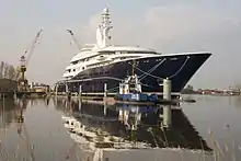 The Al Mirqab was completed in 2008.[3] The yacht has a length of 133 meters and a beam of 19 meters.[2][4] The summer deadweight of the yacht is 1,440 DWT, while the gross tonnage is 9,518 GT.[4] She is built of steel and can cruise at 21 knots with a maximum speed of 23 knots.[3] The yacht spends most of the year around the Faliro coastal area of Athens, Greece.