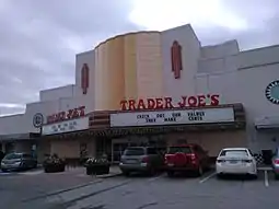 The Alabama Theatre is a historic movie theater located at the intersection of Alabama Street and Shepherd Drive in the Upper Kirby district of Houston, Texas. Constructed in 1939, in the Art Deco and Streamline Moderne styles as a suburban theater, the Alabama primarily booked roadshow engagements through most of its history.[1][2][3] Today, the theater is home to a Trader Joe's grocery store.[4] It is one of the buildings of the Alabama Shepherd Shopping Center, owned by Weingarten Realty.[5]