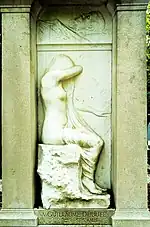 | Tomb of Pam family | Cimetière Montmartre. Paris | 1902 | Bartholomé's marble sculpture of a caryatid decorates this tomb. The sculpture was exhibited at the 1902 Salon of the Société Nationale des Beaux-Arts.[12] | |