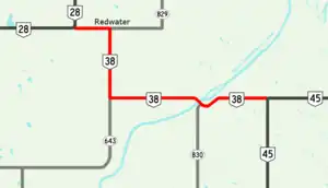 Alberta Provincial Highway No. 38, commonly referred to as Highway 38, is a 25 km (16 mi) east–west highway in central Alberta, Canada. It extends from Highway 28 in Redwater to a 'T' junction with Highway 45 north of Bruderheim.[2][1]